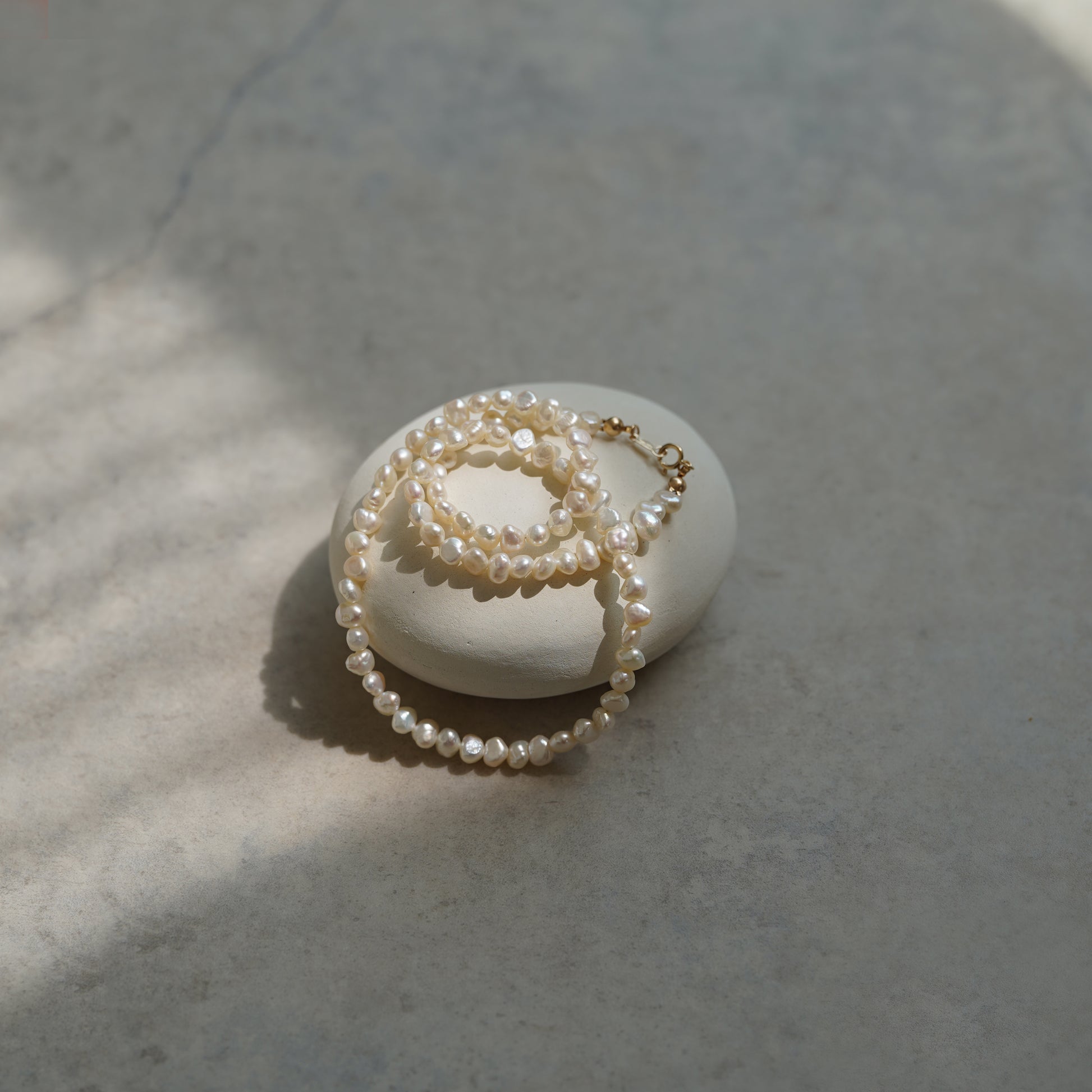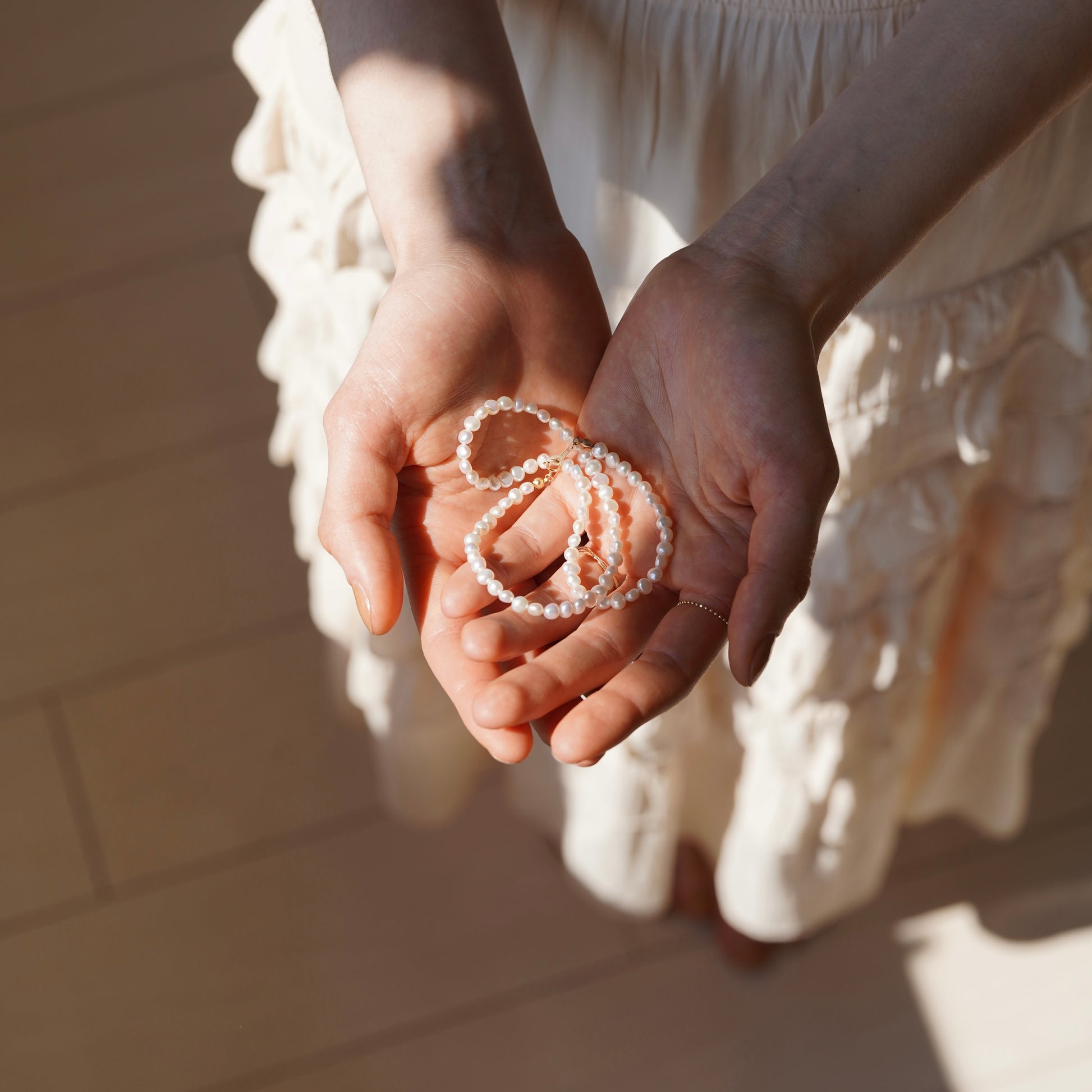一粒ひと粒の淡水パールは、形も表情も少しずつ違っていて、その不揃いさが、自然体の美しさを教えてくれます。