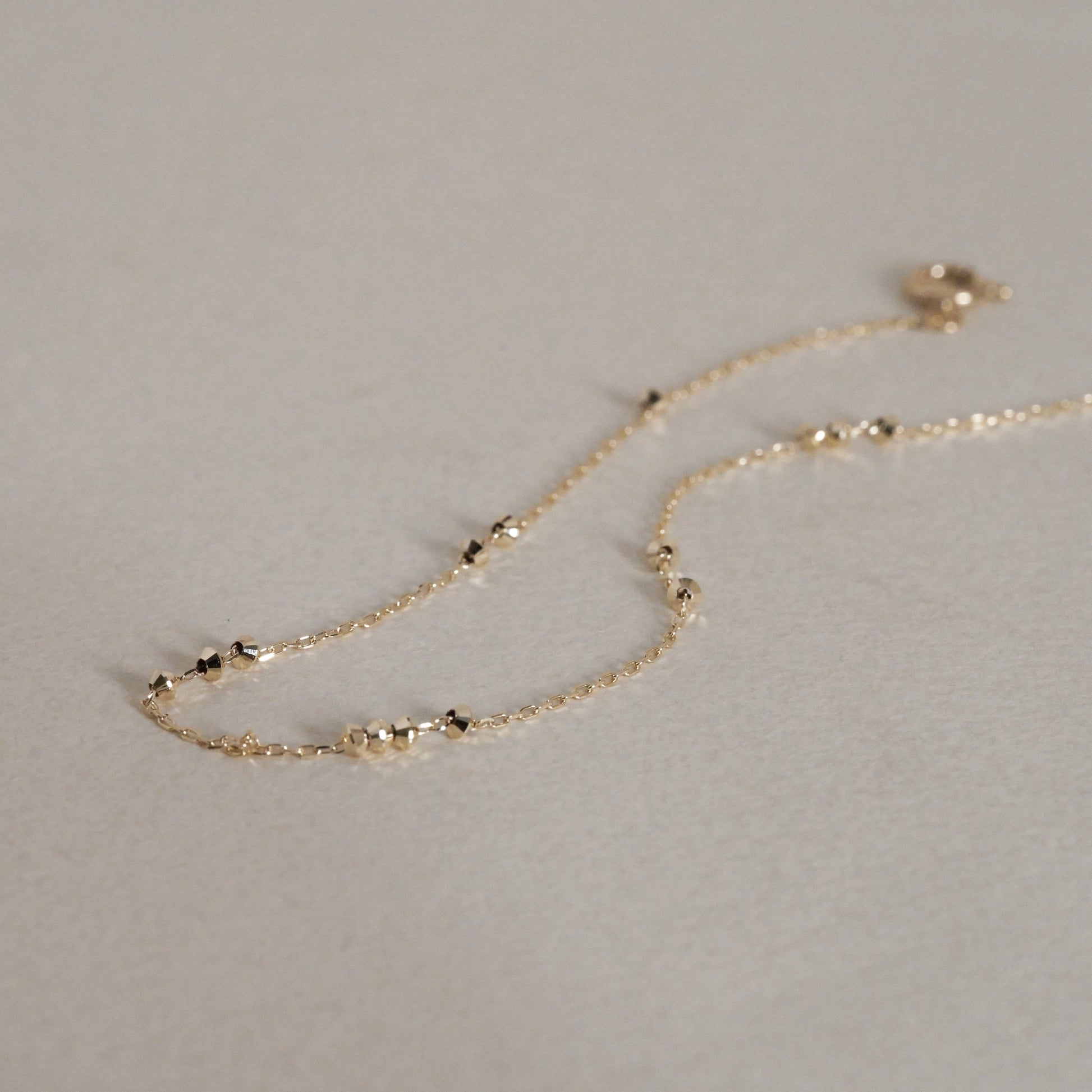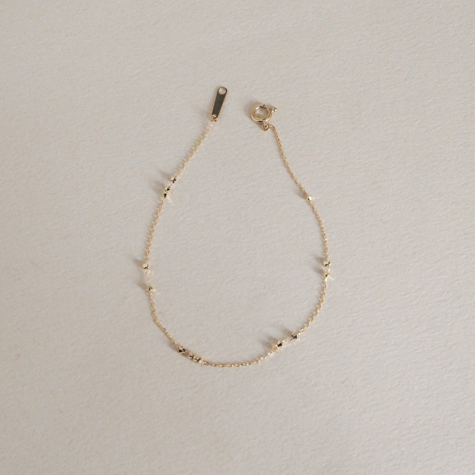 ブレスレット全体にグレインパーツが散りばめられているので、つけた時、裏表を気にせずどこから見てもきらきらと輝いてくれます。