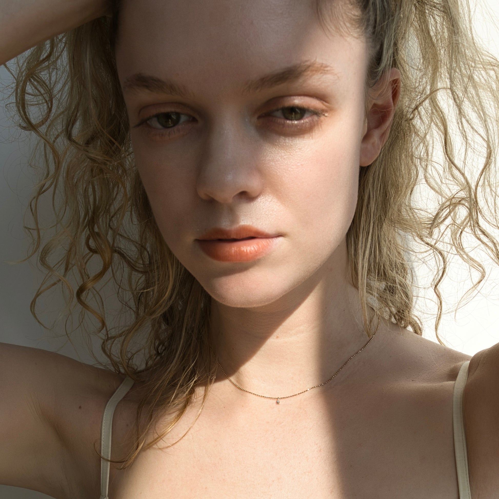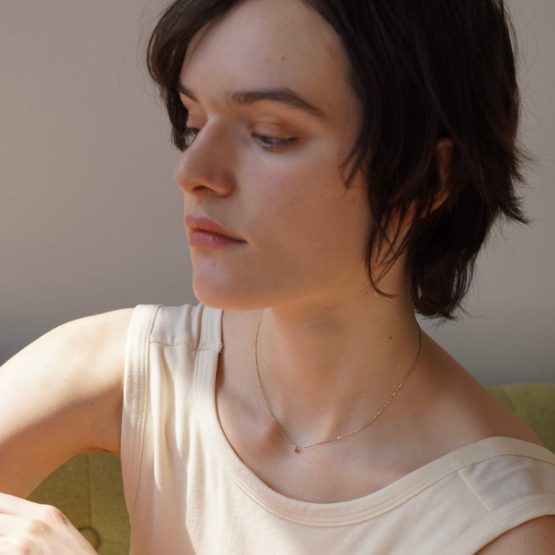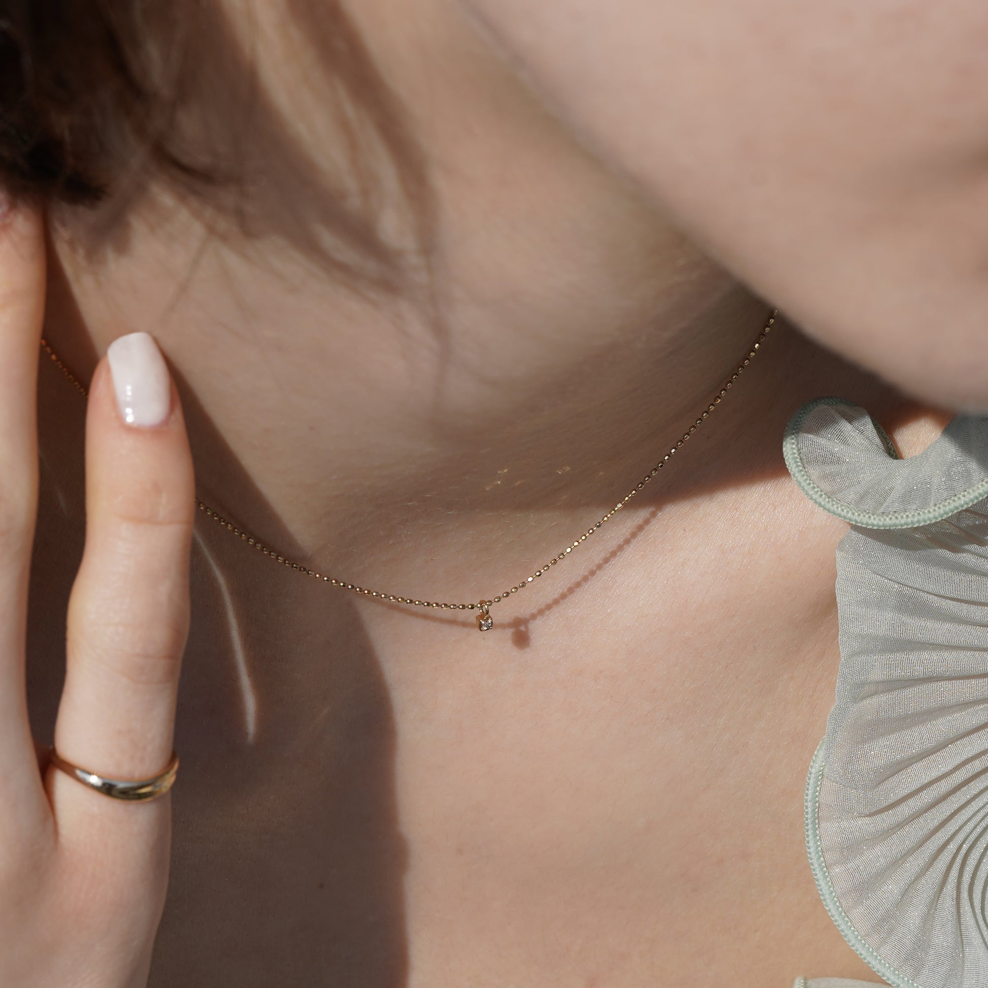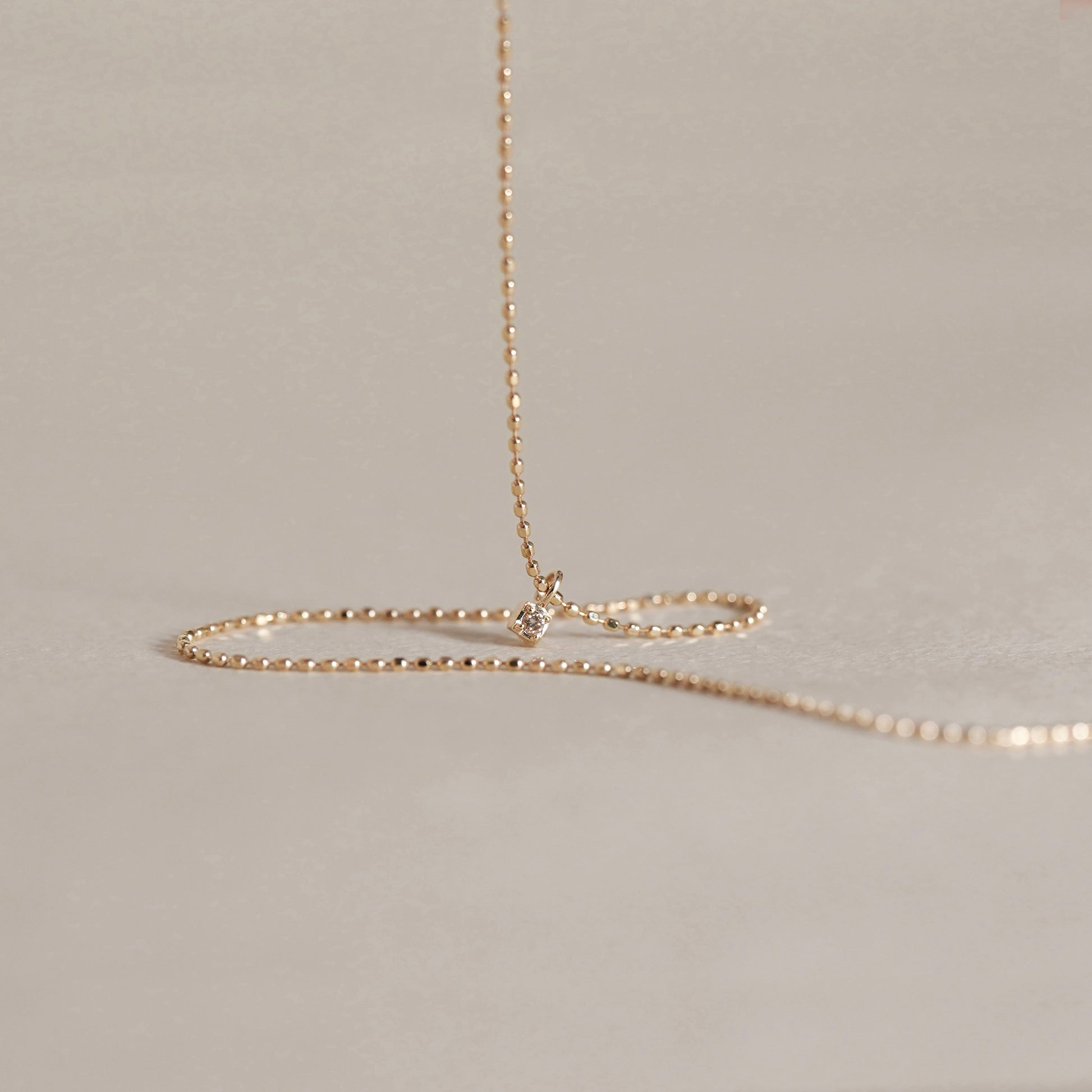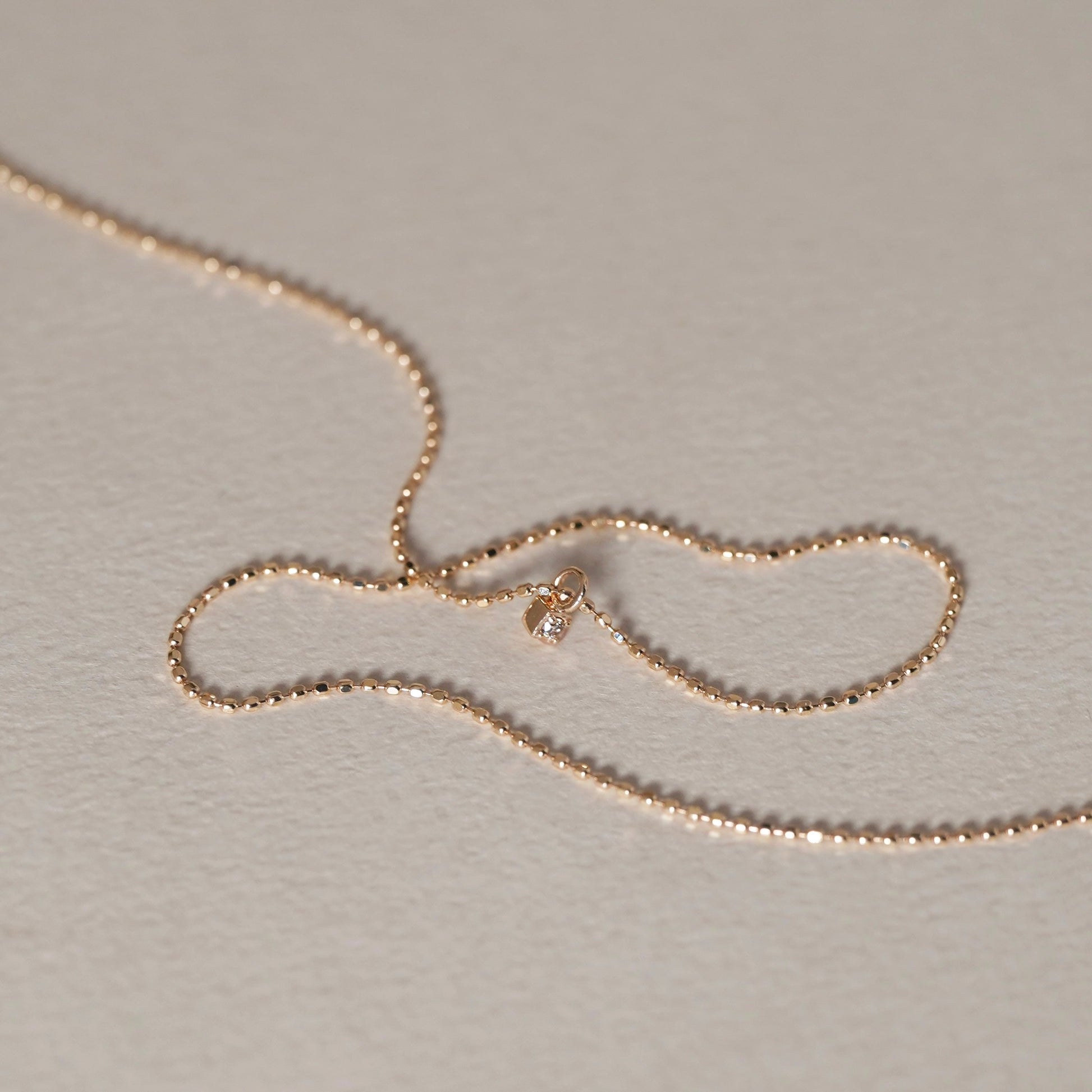 細やかに輝くカットボールチェーンネックレスとダイヤモンドのモチーフが絶妙バランスのネックレスです。