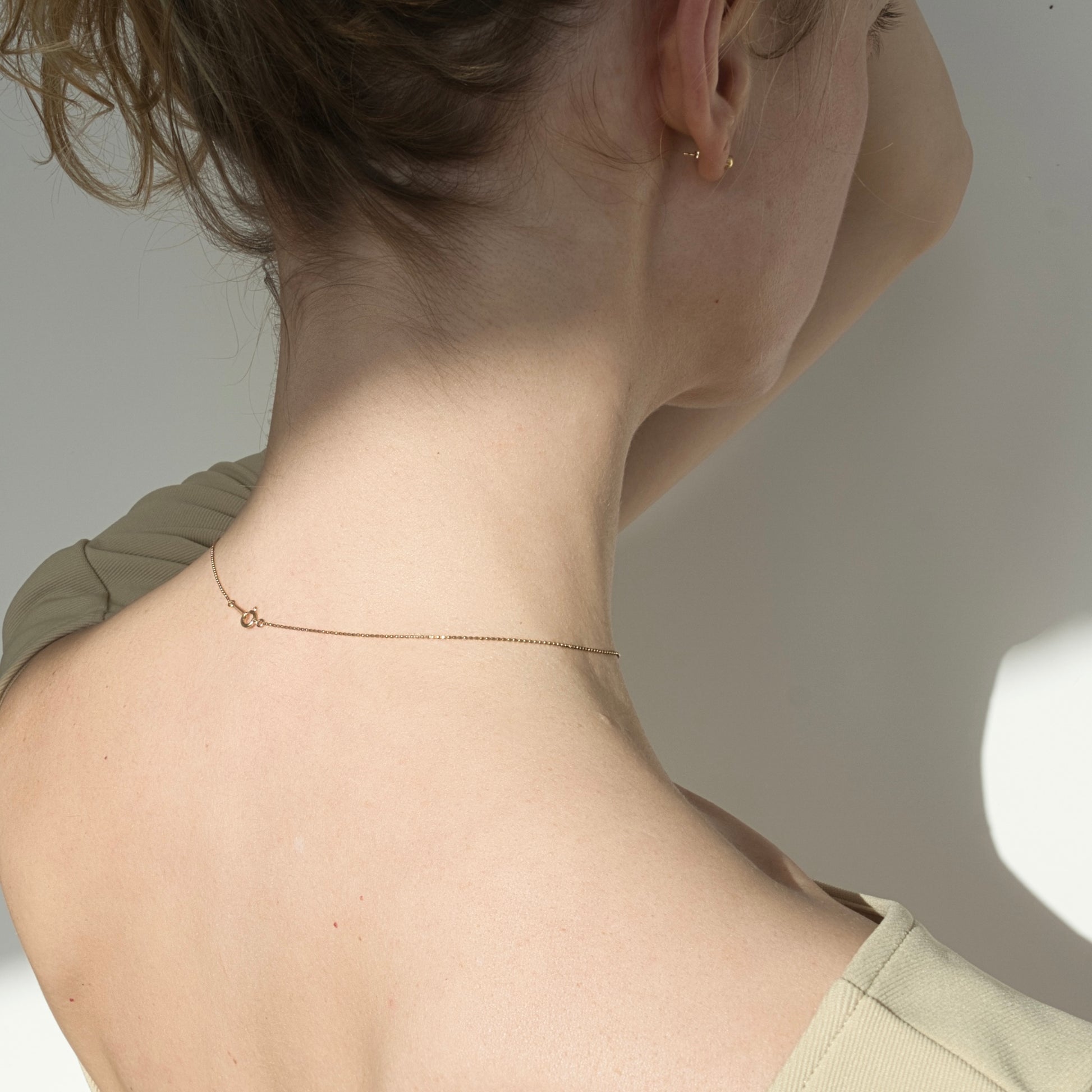 首に程よくフィットする長さで、首の詰まったお洋服と合わせたときもバランスが良くなるようにいたしました。