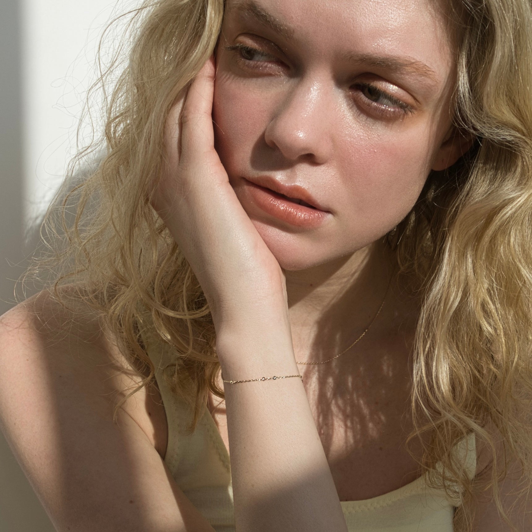 3石のダイヤモンドをランダムに散りばめたブレスレットです。
