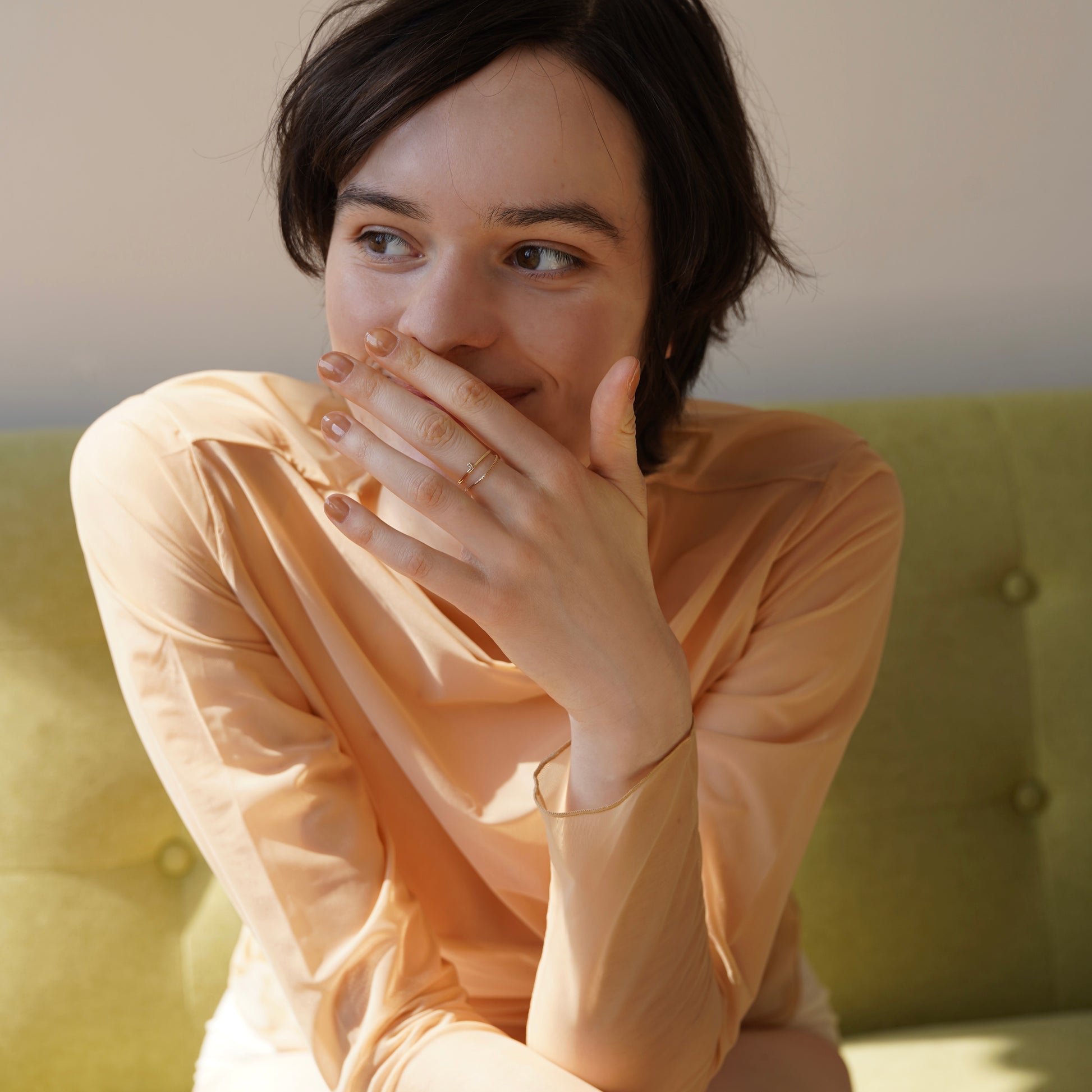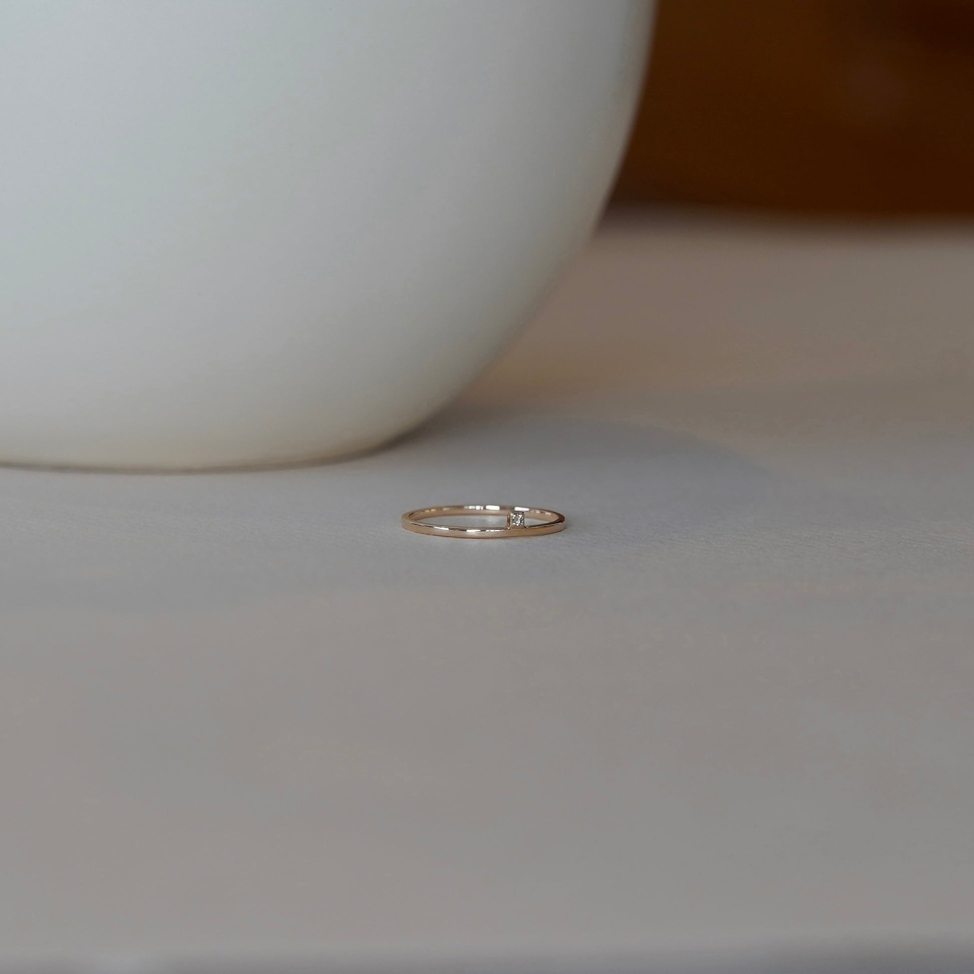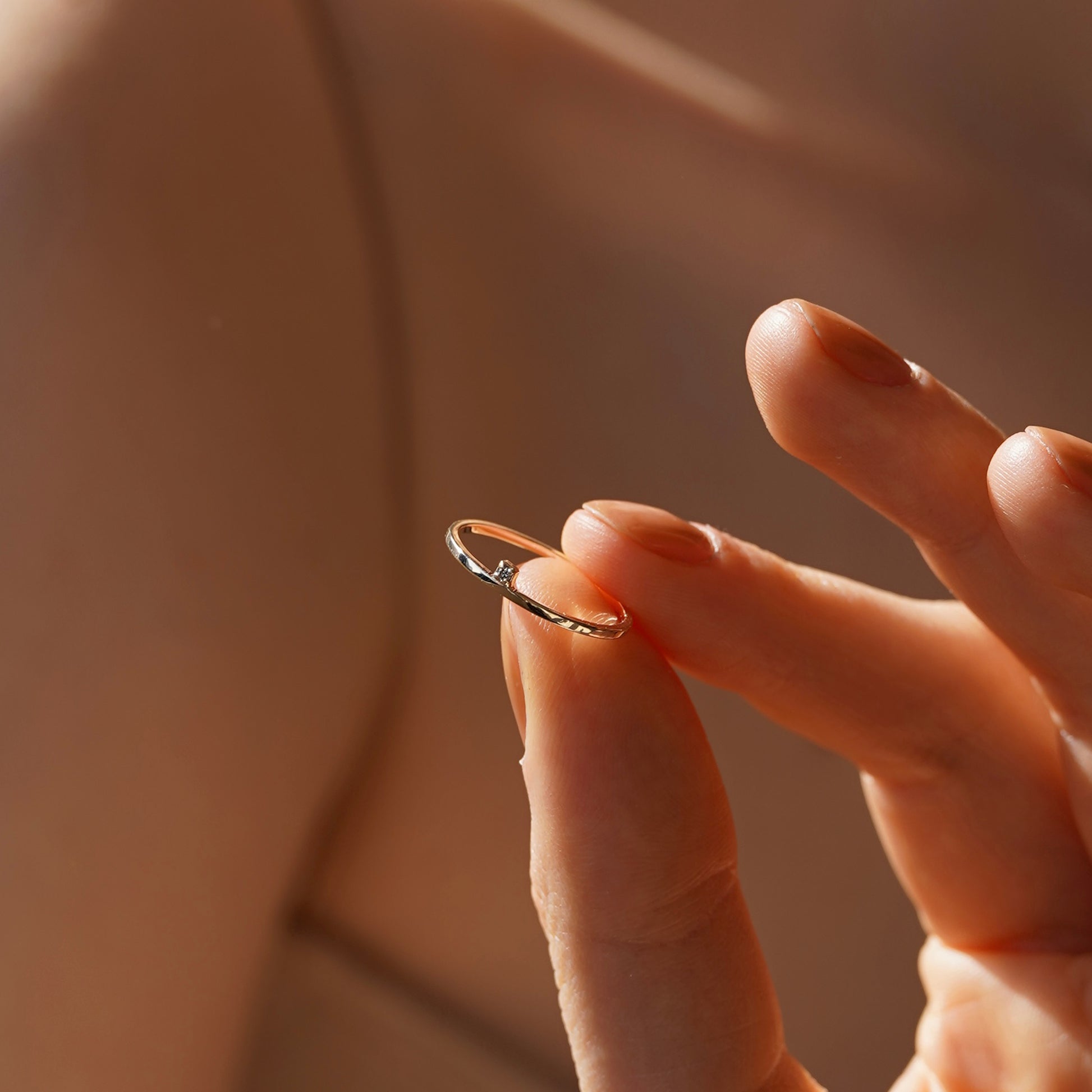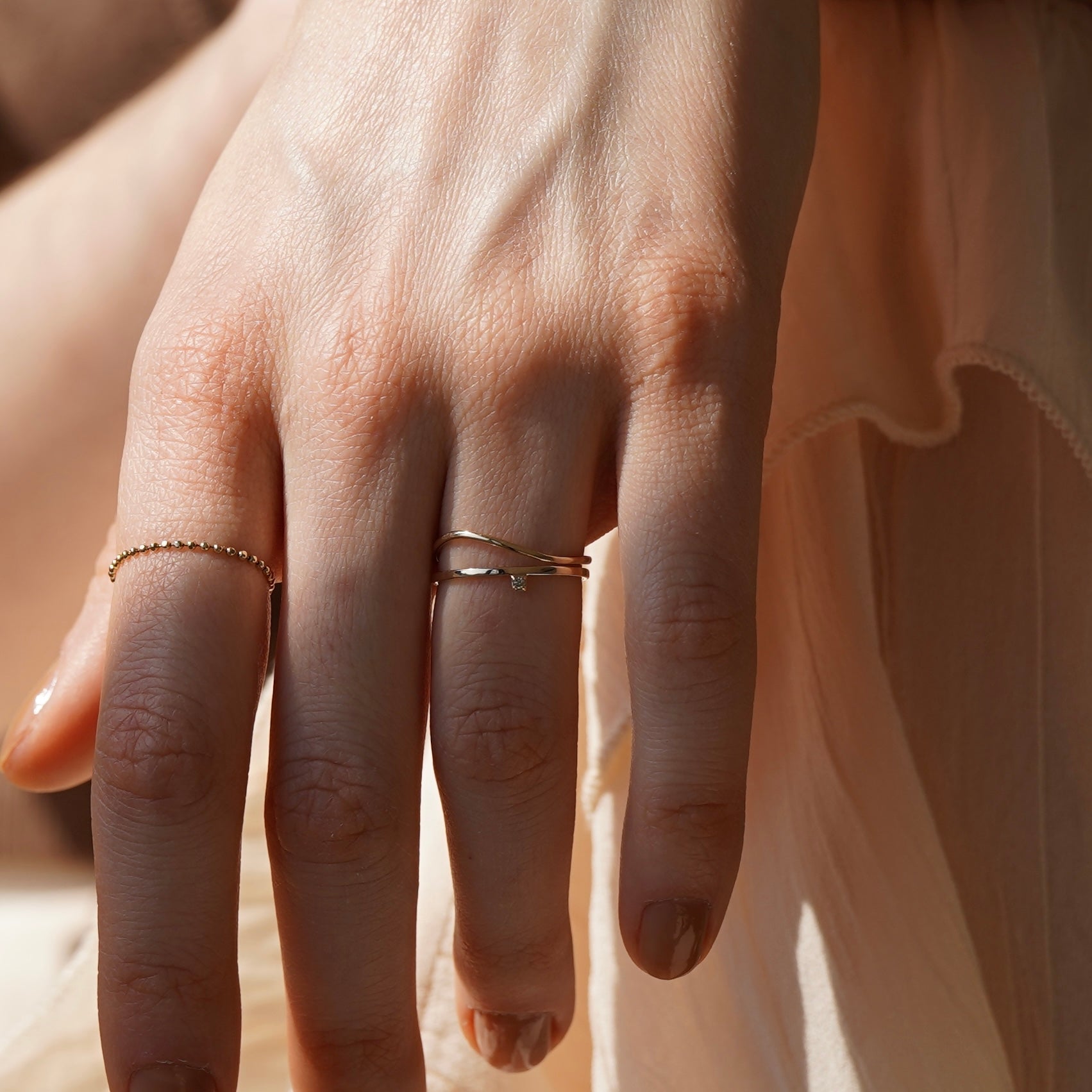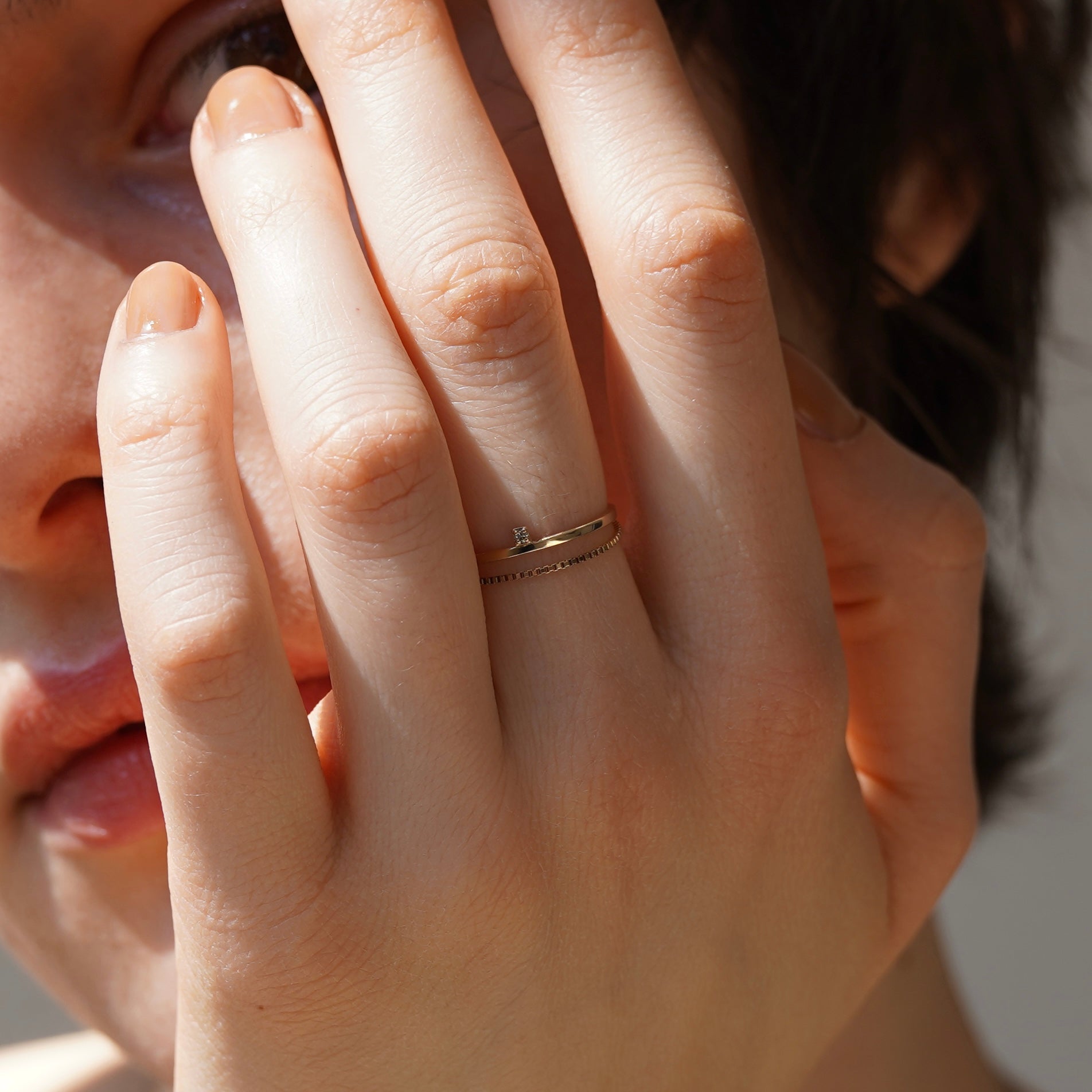 まるで朝の陽射しがカーテンの隙間から差し込むように、控えめでありながら、凛とした存在感を放つリング。