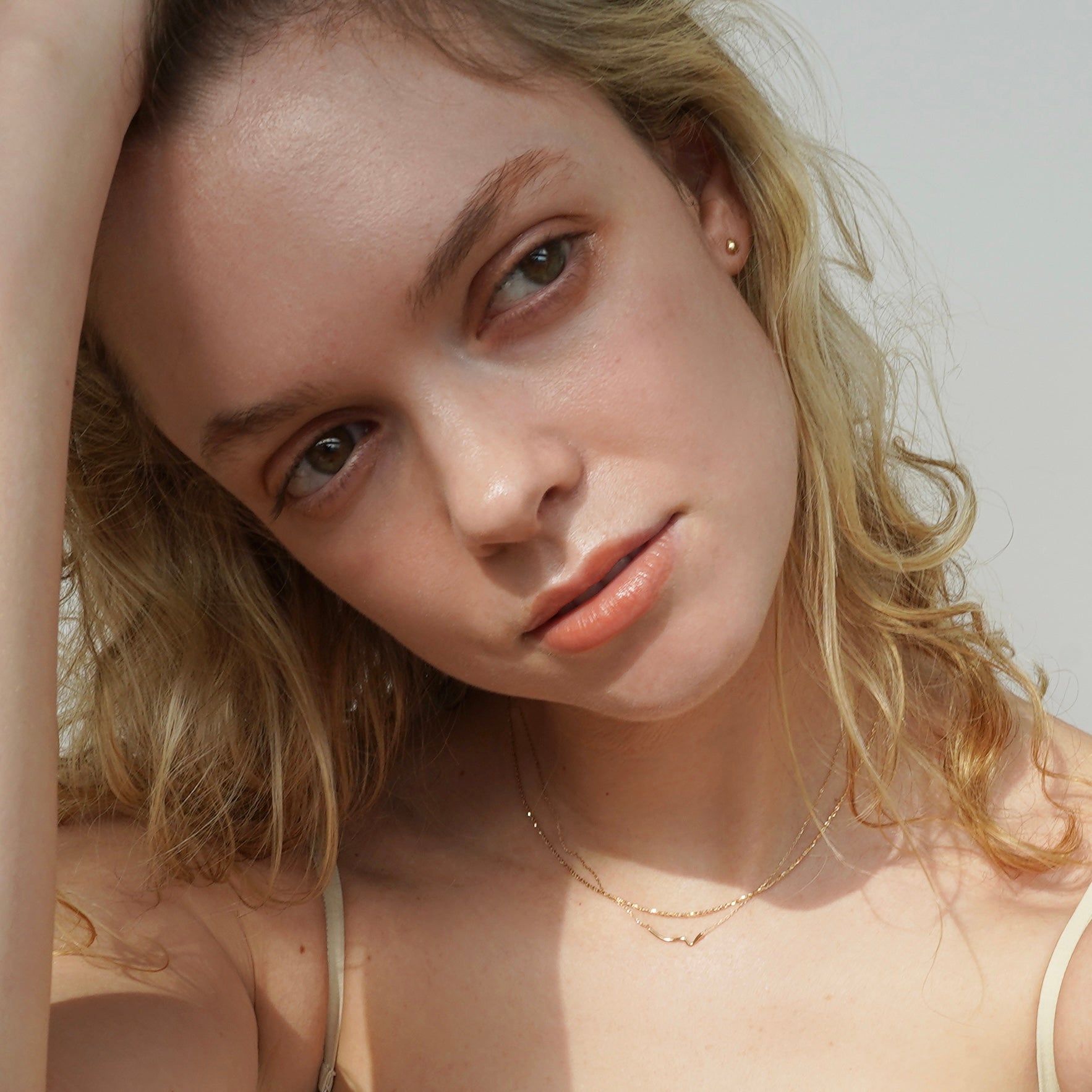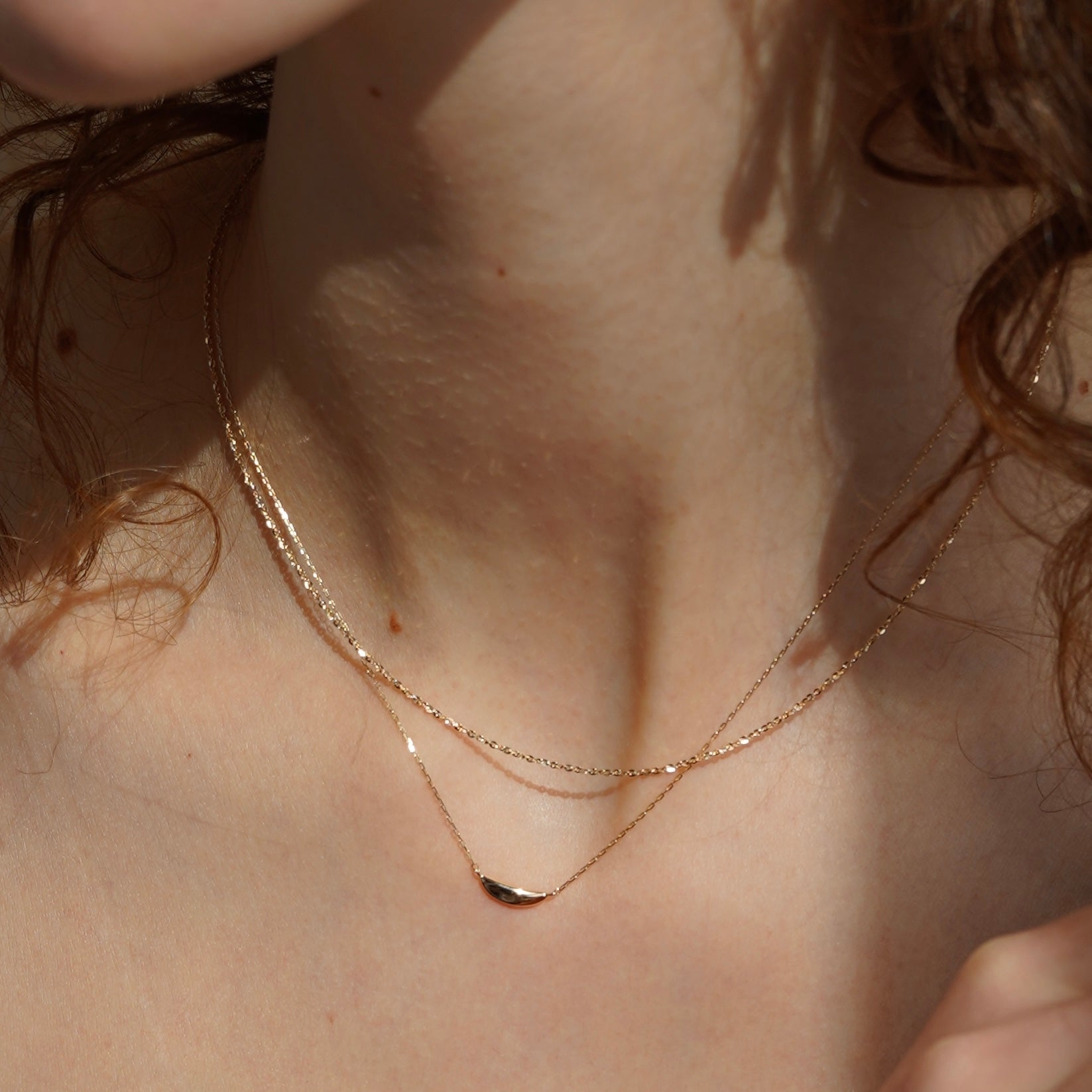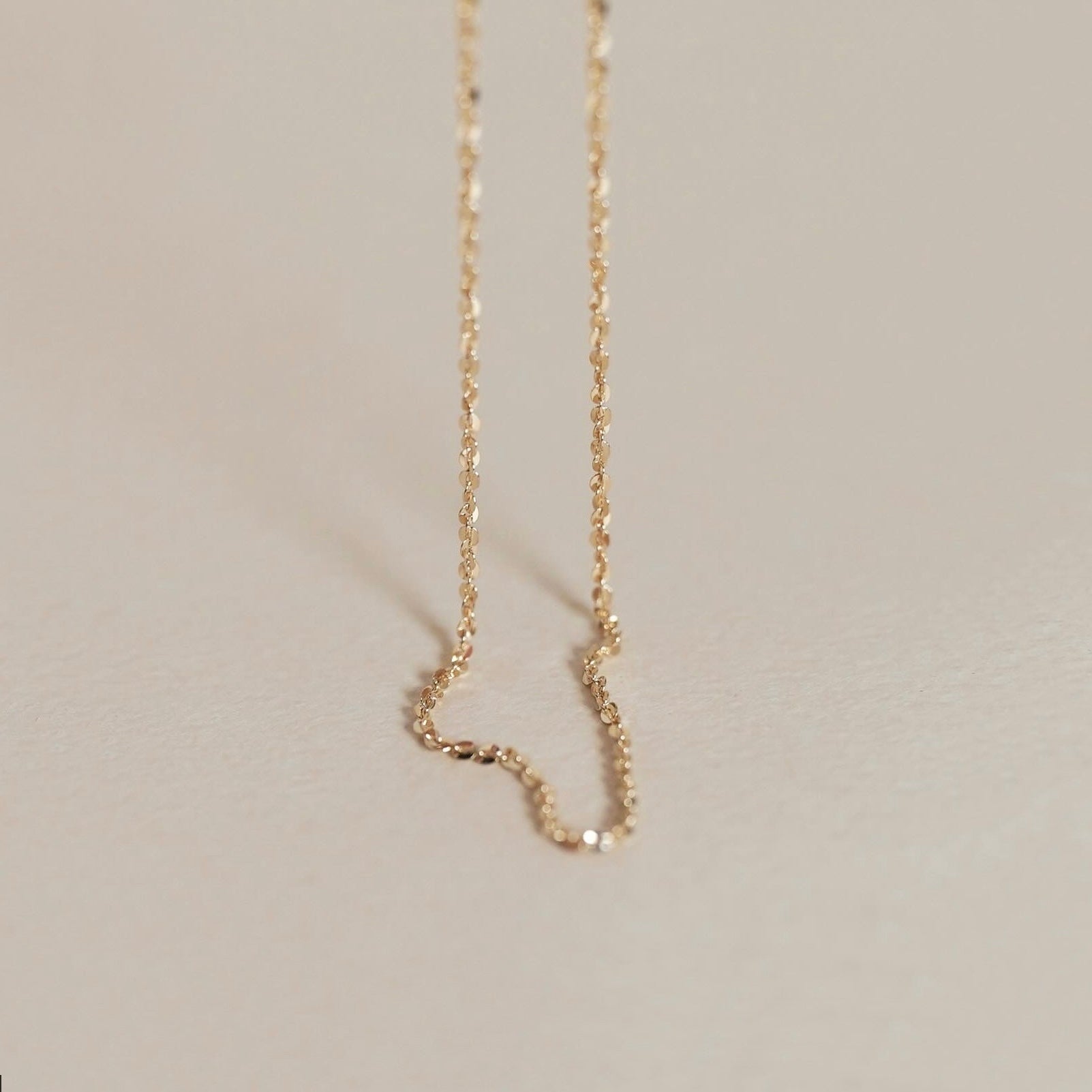 光を乱反射し、きらめく表情をつくってくれるチェーンネックレス。