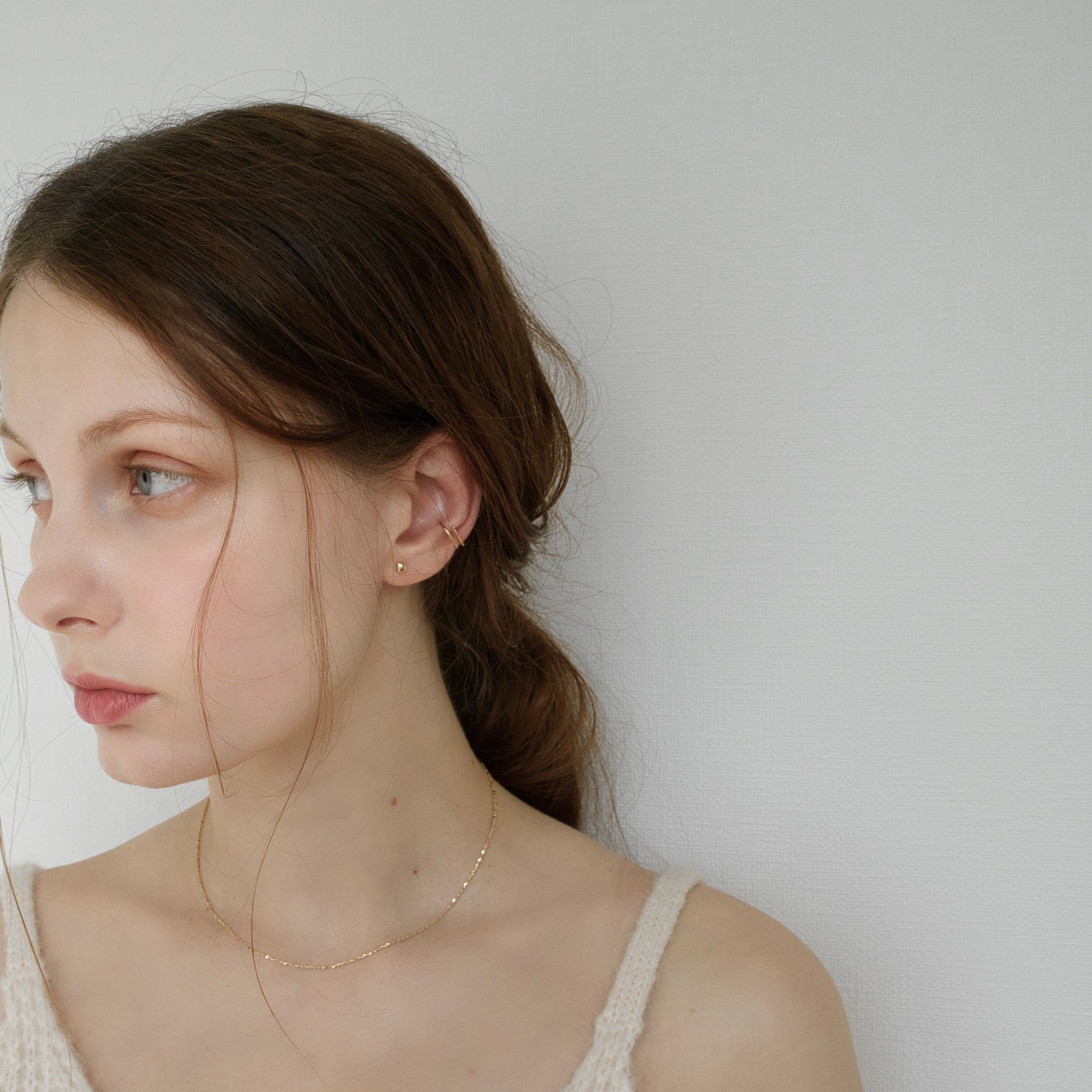 また、首に程よくフィットする長さで、首の詰まったお洋服と合わせたときもバランスが良くなるようにしました。