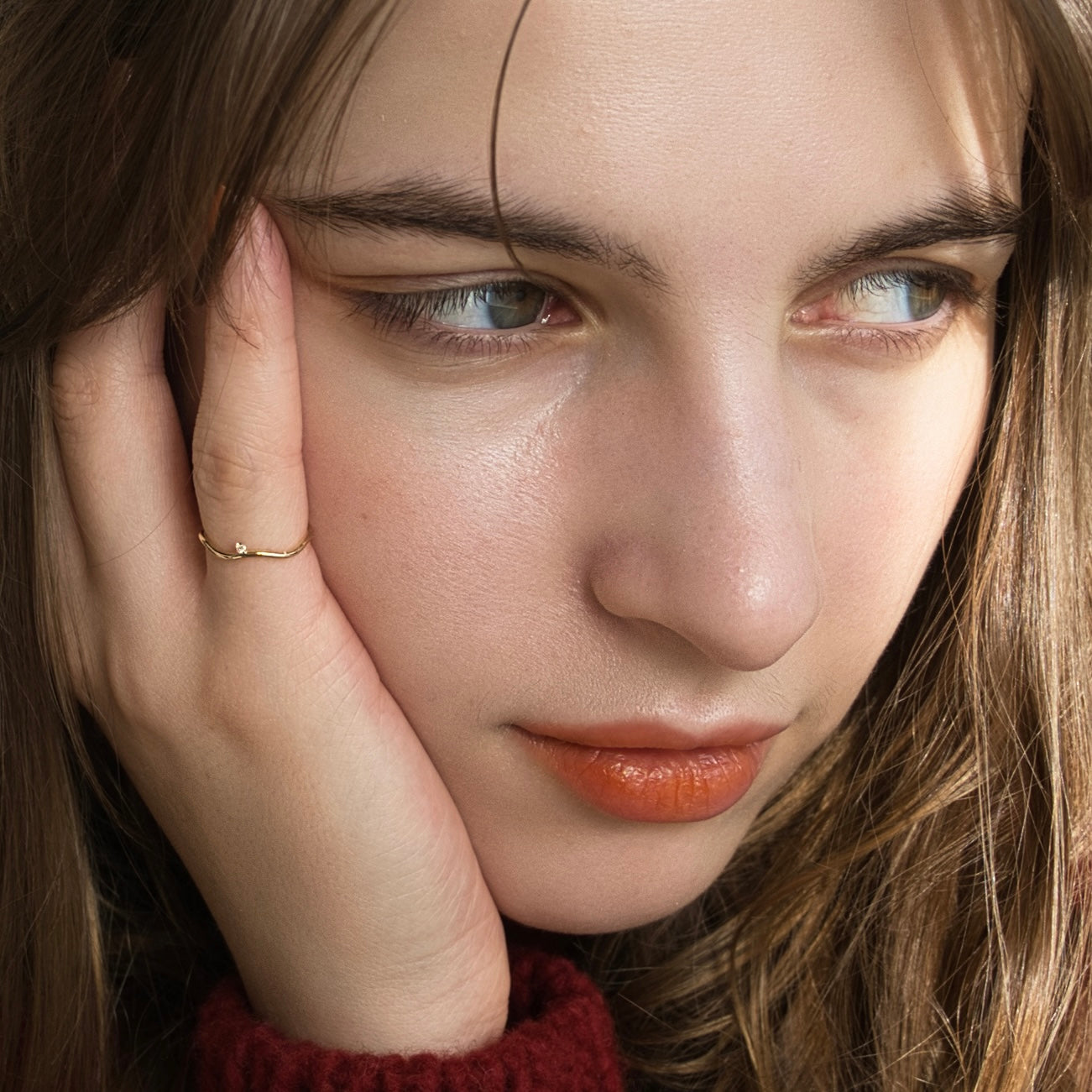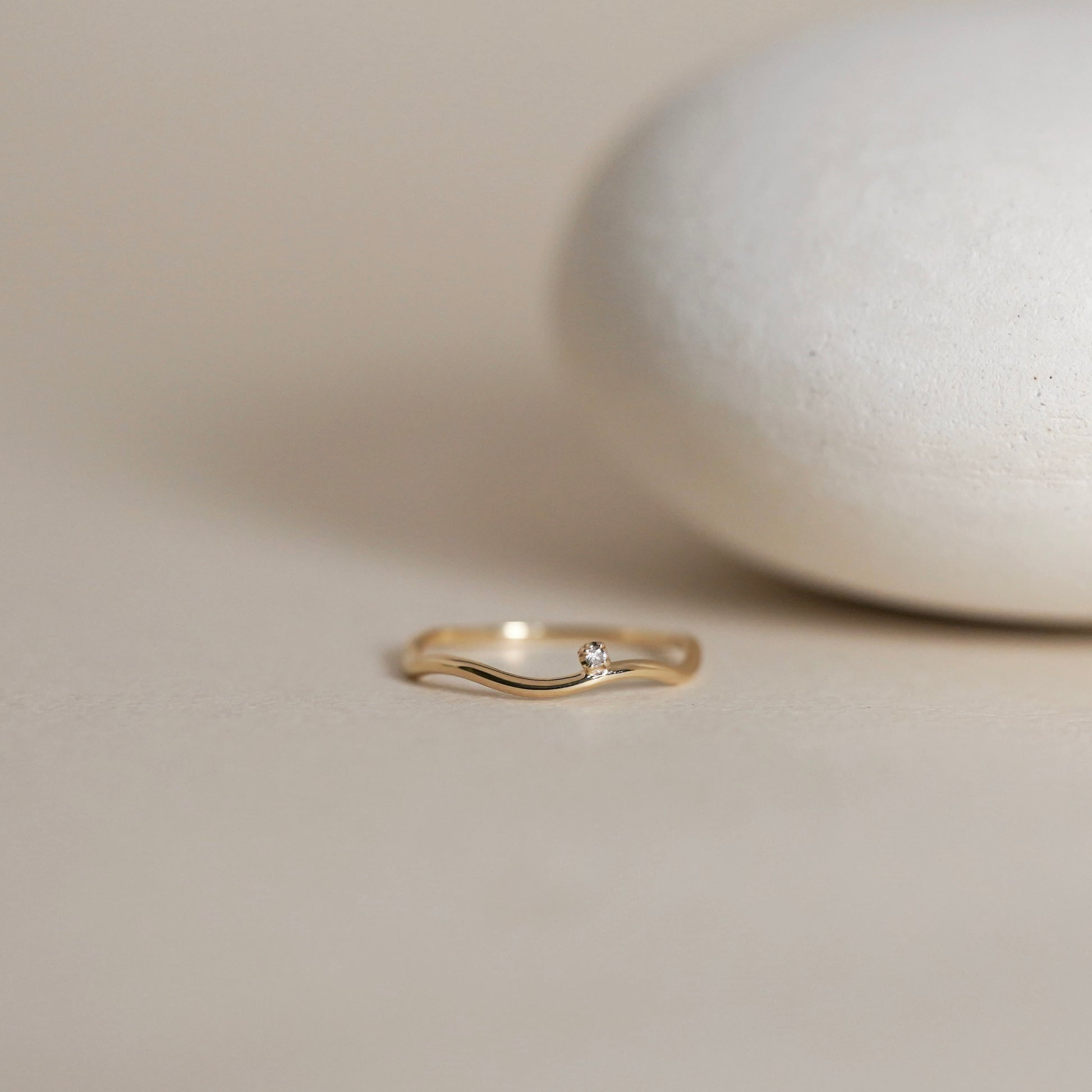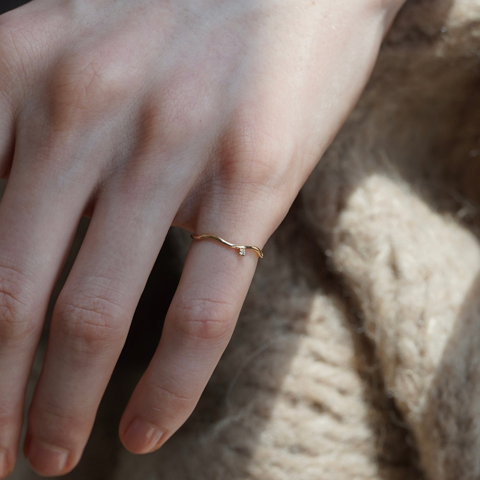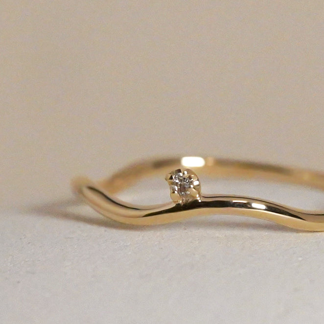 緩やかなカーブにダイヤモンドを1石あしらったピンキーリングです。
